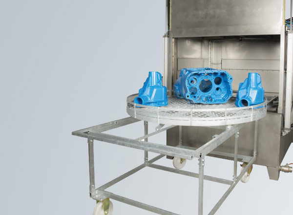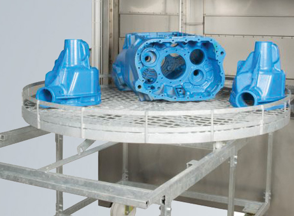 Las lavadoras de piezas automáticas KBN son máquinas para el lavado y desengrase de piezas pesadas y de grandes dimensiones. La limpieza de las piezas se realiza con detergentes alcalinos, mediante la aspersión en caliente de la solución desengrasante desde los aspersores superiores, laterales e inferiores. La plataforma de carga gira sobre su eje gracias a un motorreductor, garantizando que los chorros alcalcen toda la superficie de las piezas a lavar.